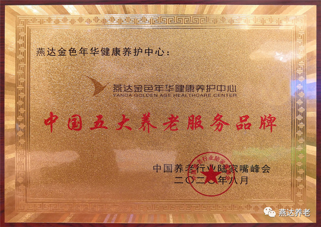 2020年8月27日,燕達金色年華健康養(yǎng)護中心分別于《第五屆中國養(yǎng)老行業(yè)陸家嘴峰會》、《中國國際養(yǎng)老產業(yè)博覽會中國養(yǎng)老十大品牌評選》兩項活動中捷報頻傳,喜獲“中國五大養(yǎng)老服務品牌”及“中國醫(yī)養(yǎng)結合十大品牌”兩項殊榮。