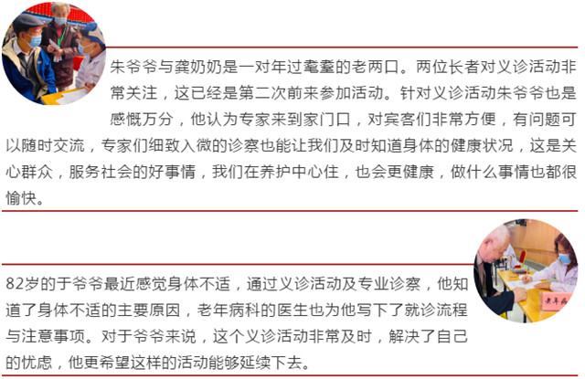 近3小時的義診活動,燕達醫院的專家們不辭辛苦,嚴謹耐心的為養護中心在住賓客診療答疑,及時有效地解決了賓客關于健康狀況的實際需求。同時,現場賓客紛紛對義診活動的全面專業及專家們的盡職盡責給予高度贊賞。
